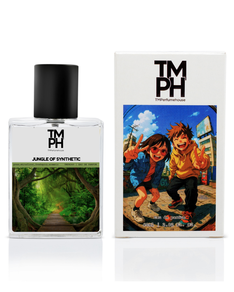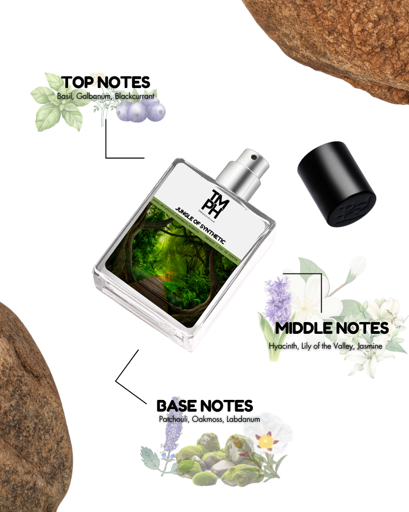 Jungle of Synthetic opens with an explosion of green galbanum and basil, weaving into delicate lily of the valley and jasmine, anchored by earthy patchouli and oakmoss. Vivid and daring, it evokes the raw beauty of an untamed garden. Jungle of Synthetic is modern, artistic, and unapologetically fresh with avant-garde allure.