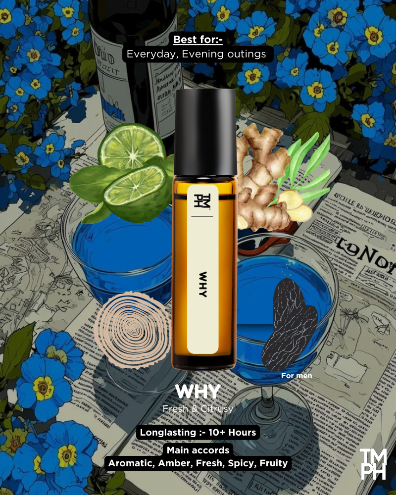 WHY AT is a modern fresh–woody attar crafted for confidence and everyday power. It opens with a burst of crisp citrus and aromatic freshness, followed by a smooth blend of spices and clean woods. Energetic, masculine, and long-lasting — this attar is built for men who want to smell sharp from morning to night.