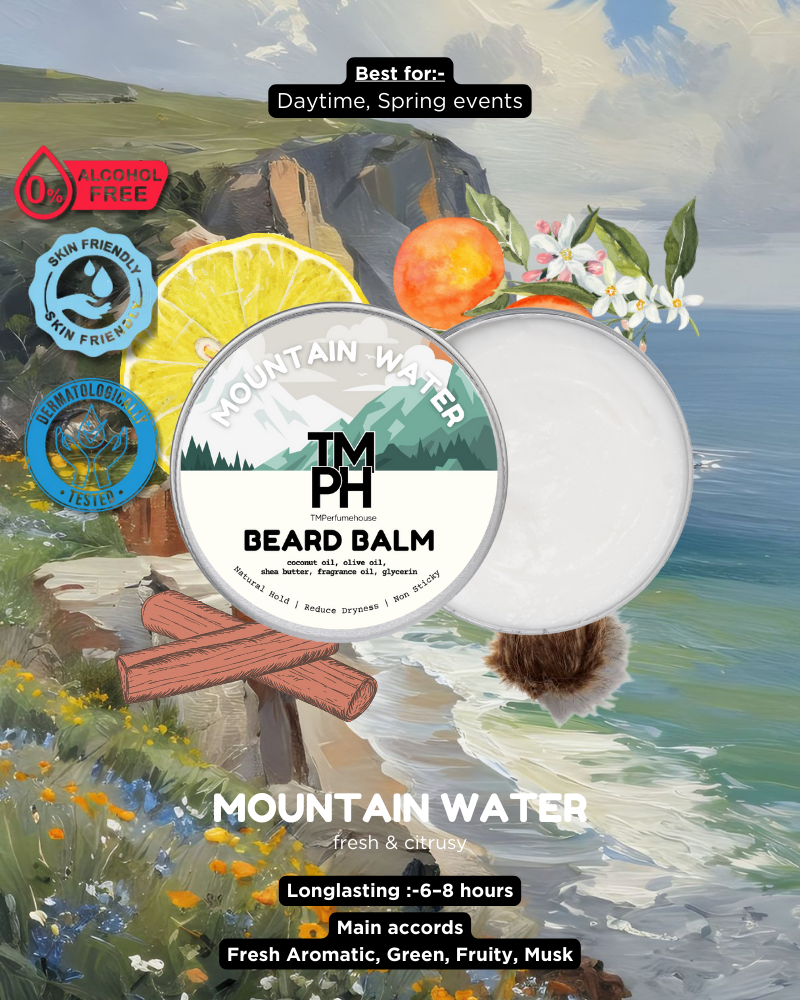 MOUNTAIN WATER | Premium Beard Balm – 10+ Hour Freshness & Styling - Inspired by Silver Mountain Water by Creed**