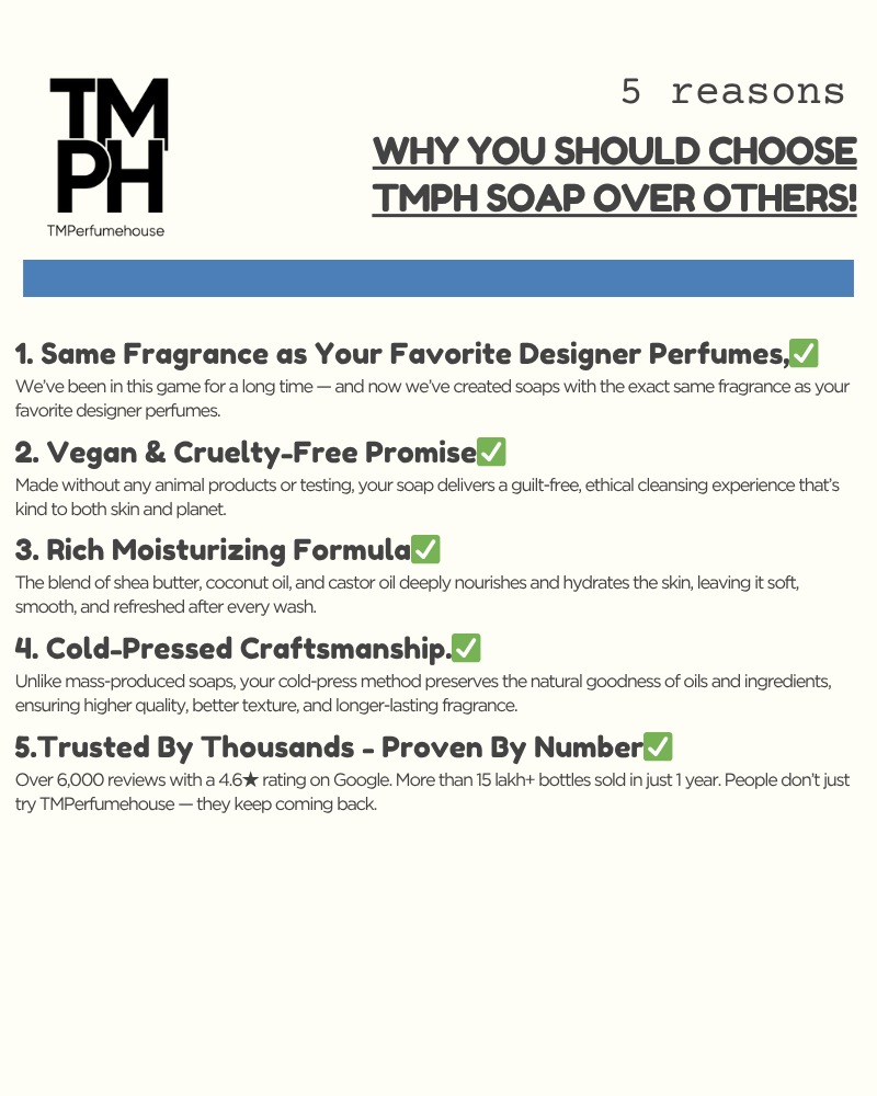 1.Same Fragrance as Your Favorite Designer Perfumes,βœ…:-We’ve been in this game for a long time β€” and now we’ve created soaps with the exact same fragrance as your favorite designer perfumes.
