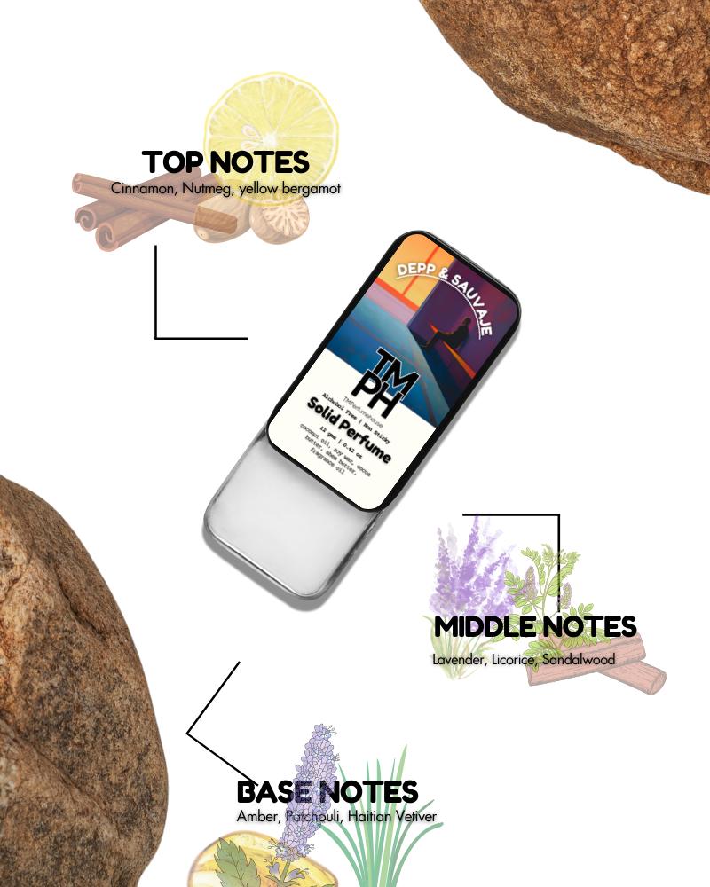 Depp & Sauvage Solid Perfume – Unleash your wild and sophisticated side with Depp & Sauvage. This solid fragrance opens with fresh citrus and aromatic top notes, flows into a heart of spicy and floral accords, and settles into a bold, woody base, creating a rugged yet refined scent.