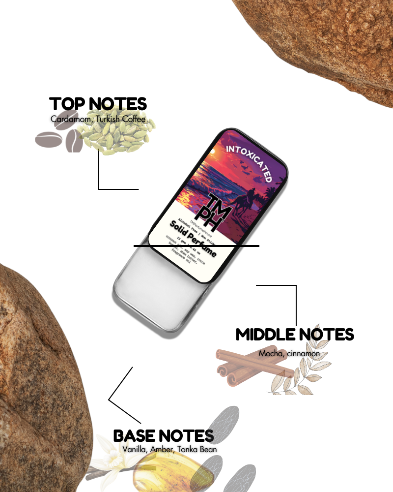 Intoxicated is a rich, warm, and captivating gourmand fragrance. It opens with sparkling citrus and fresh top notes, flows into a heart of aromatic spices and coffee, and settles into a deep, creamy base of vanilla, woods, and musk. Perfect for those who love a bold, indulgent, and irresistible scent.