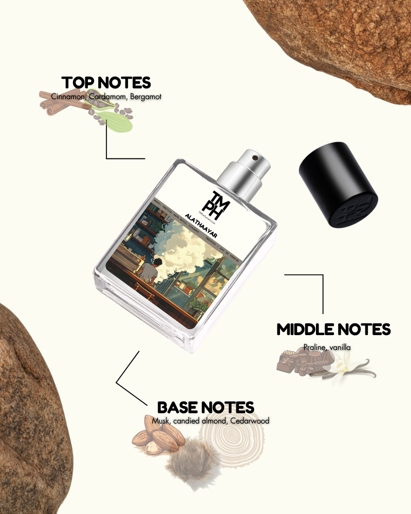 Alathaayar captivates with its sophisticated balance of rich vanilla, sparkling citrus, and aromatic spices, grounded by smooth woods and amber. Both warm and elegant, it evokes a sense of comfort and luxury. Perfect for any season, Alathaayar embodies modern refinement, leaving a trail of sensuality, depth, and enduring masculine elegance.
