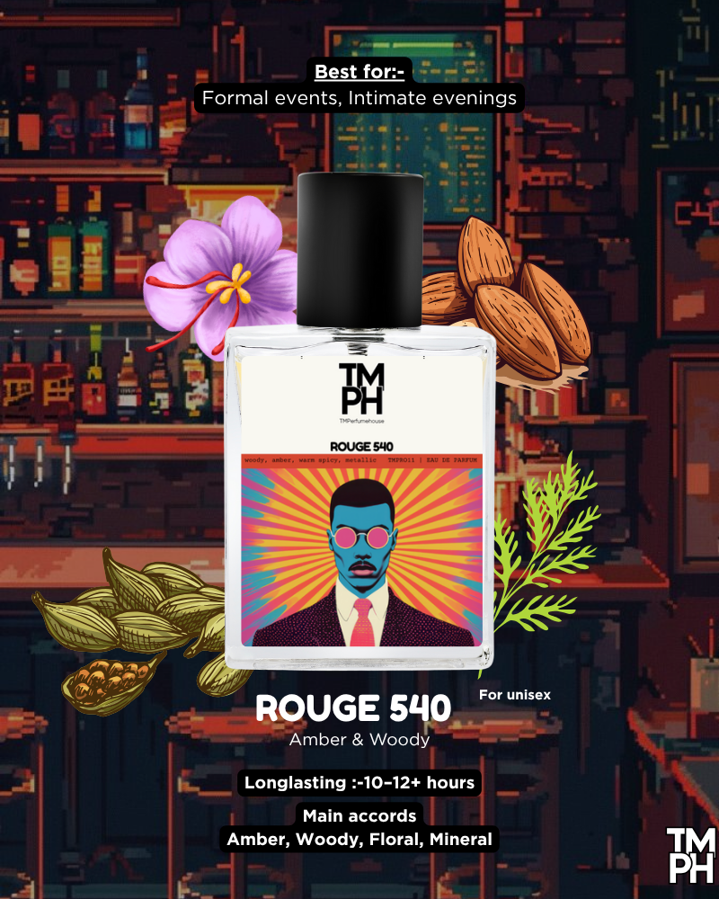 Rouge 540 unveils a luminous harmony of exotic saffron, delicate jasmine, and warm deepened by cedar and resinous woods. Both ethereal and powerful, it balances lightness with intensity, creating a scent that feels luxurious and unforgettable. Rouge 540 embodies sophistication, mystery, and timeless allure in every lingering note.