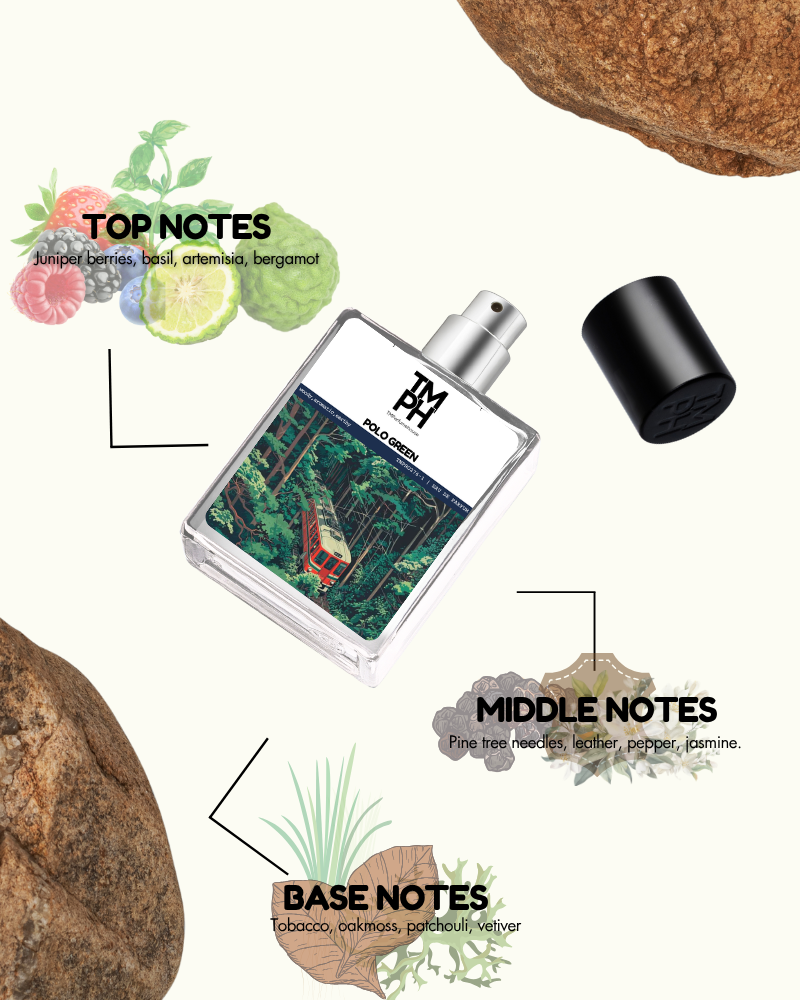The  Polo Green is a bold, masculine fragrance that opens with crisp greens and herbs, settles into rich leather and pine, and finishes with deep tobacco and oakmoss. Use it in cooler weather or evenings when you want to make a strong, confident impression — it’s great for office power moves or smart-casual nights out because it exudes timeless sophistication and maturity.